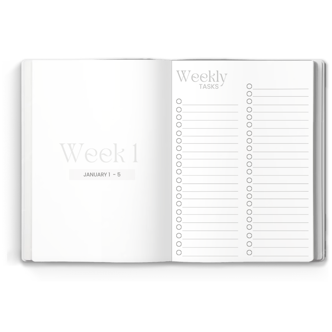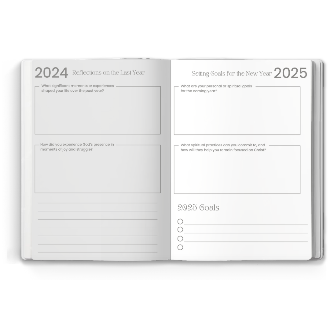 - Goal Setting & Reflections: Kick off the year by setting your intentions with pages for reflections, symbols, images, and quotes, helping you establish your spiritual goals.